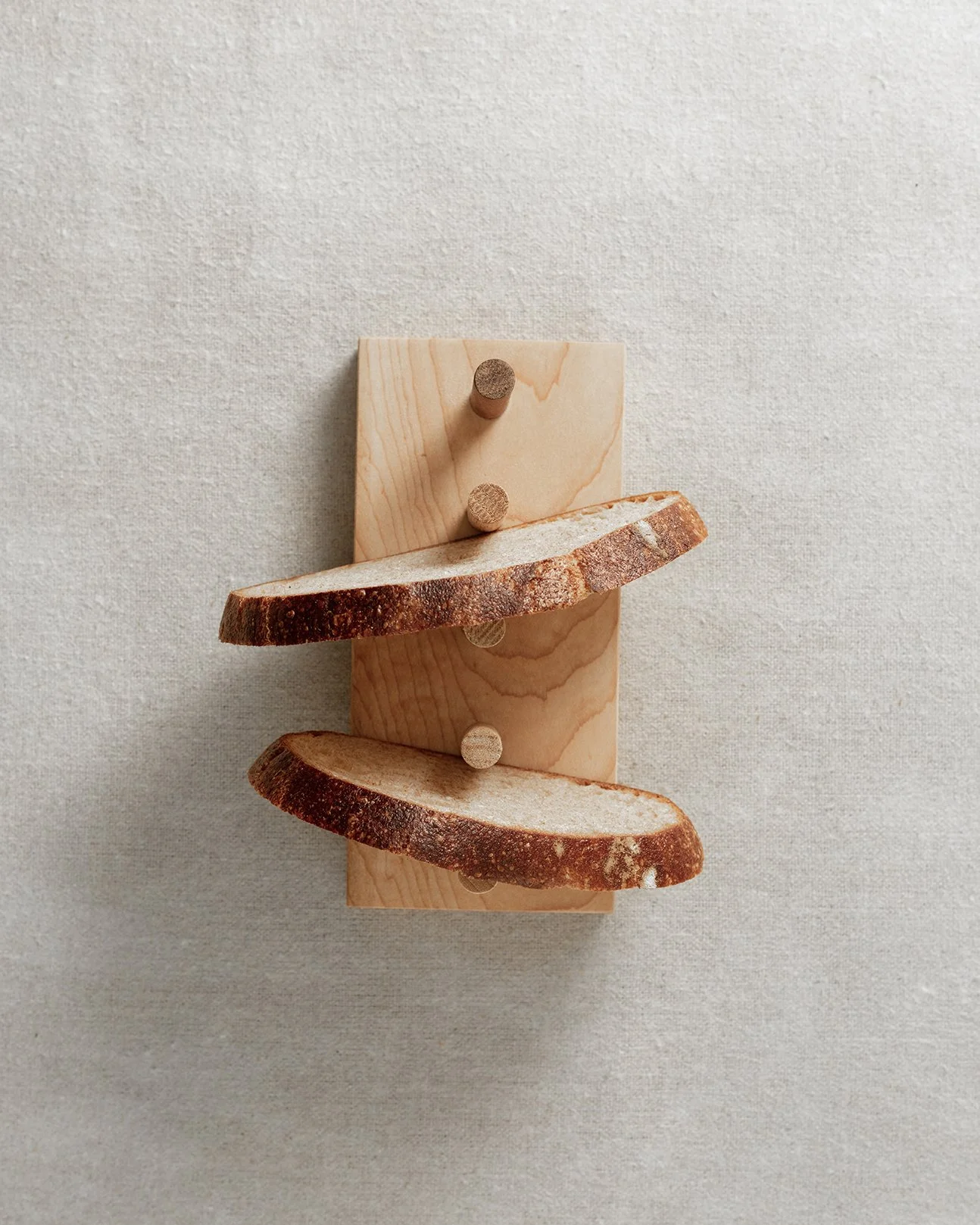 Created by local designer Dino Sanchez, Mixed Woods is a set of 50 limited edition toast racks fabricated from various domestic hardwoods - maple, walnut, oak, cherry, and ash. The design draws inspiration from Bread Alone, both in our context in Upstate New York and our offering, reflecting the many natural and vibrant tones of bread. Each piece of the limited edition is unique in it's mixed use of varying hardwoods.